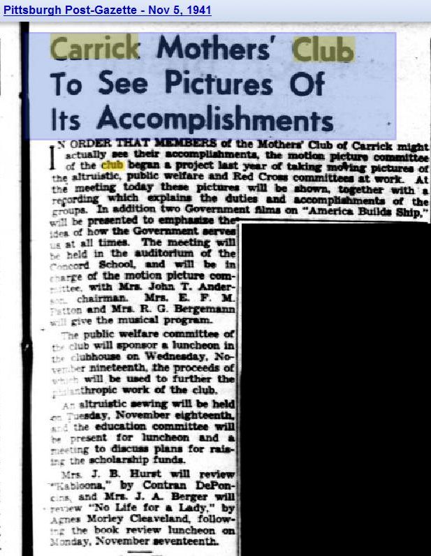 - (download) Mother's club post-gazette 1933.jpg . . 621 × 691 . . 99 KB . . Jrudiak . . 19:08, 5 December 2008
